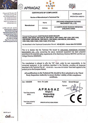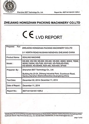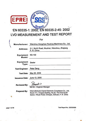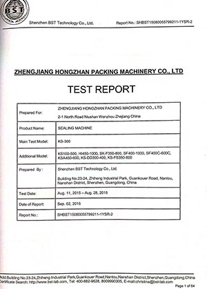 Relatório de certificação de máquina de vedação de mão