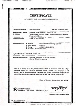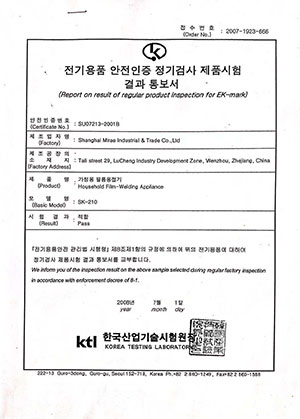 Certificação de máquina de selagem coreana