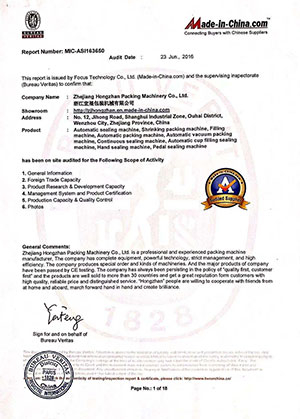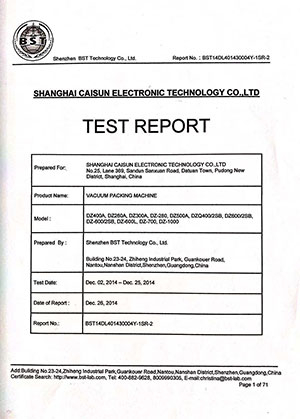 Relatório de certificação de máquina de embalagem a vácuo