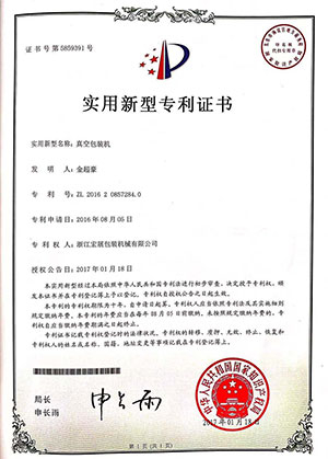 Patente de máquina de embalagem a vácuo