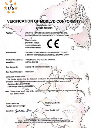A empresa passou a certificação do sistema de gestão da qualidade ISO9001, a principal máquina de vedação do produto obteve a certificação CE da Comunidade Europeia.